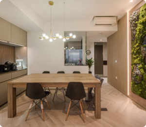 Immerse yourself in the exquisite ambiance of the Loaf House, adorned with various wood tones from the furniture to the walls, all complemented by a verdant plant feature wall. Taking cues from Muji’s minimalist design philosophy, we harmoniously blended hues of brown, grey, and white to create a tranquil and soothing ambiance.